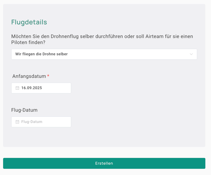 5. Zuletzt können Sie noch auswählen, ob Sie selbst fliegen möchten oder ob Airteam einen Piloten aus dem Piloten-Netzwerk für den Flug beauftragen soll